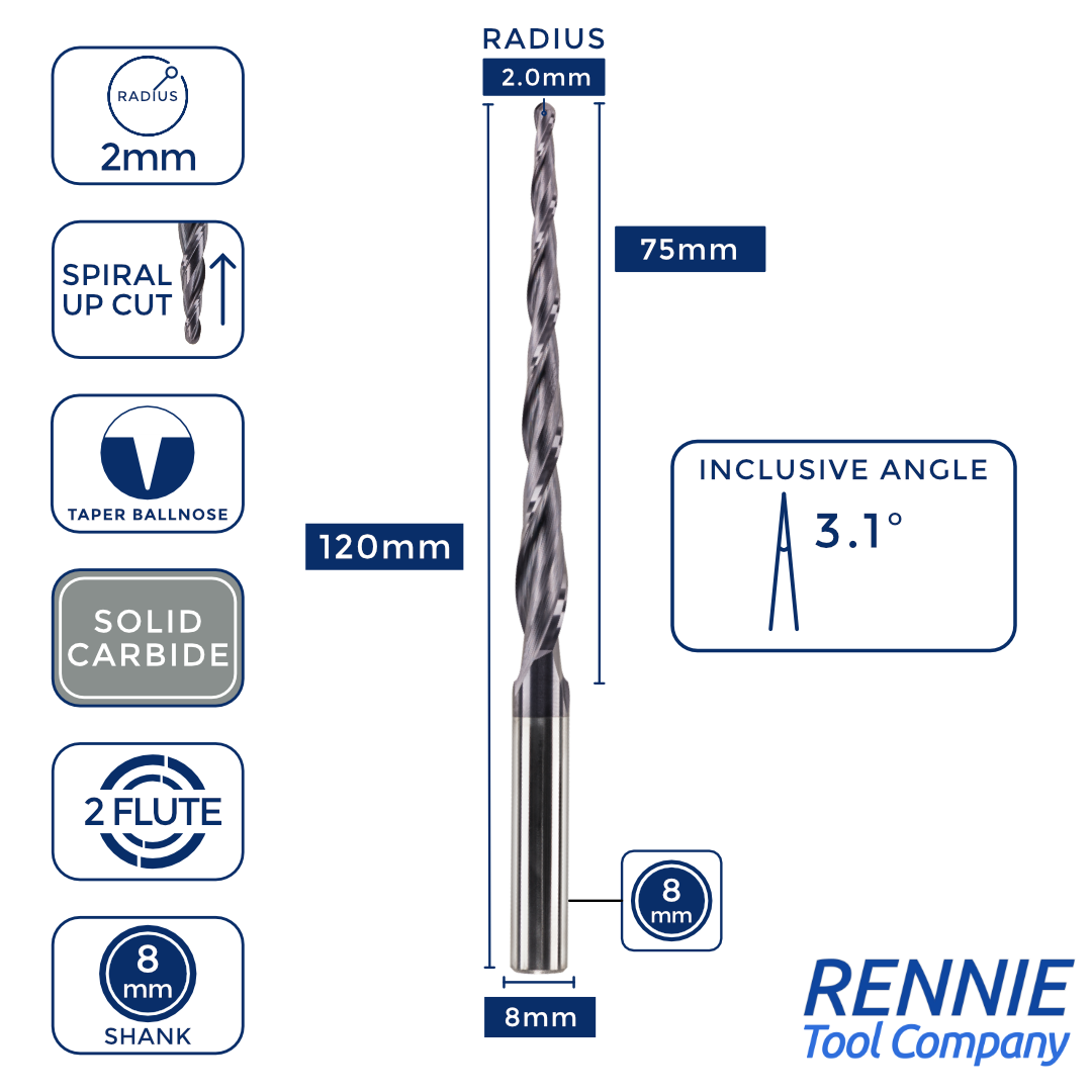 | 2mm | 75mm | 3.1 Degrees | 120mm | 8mm |