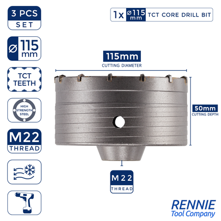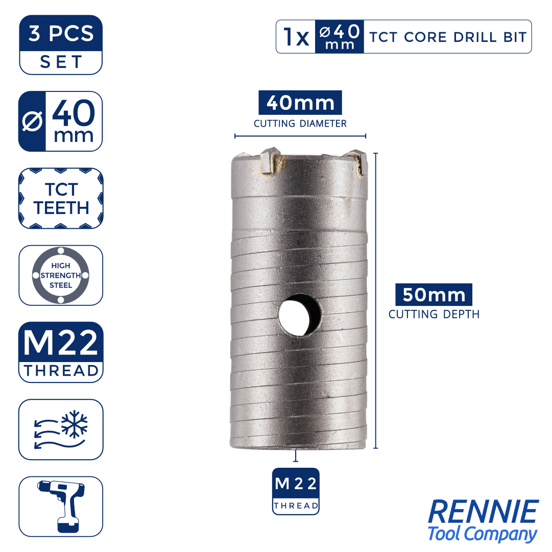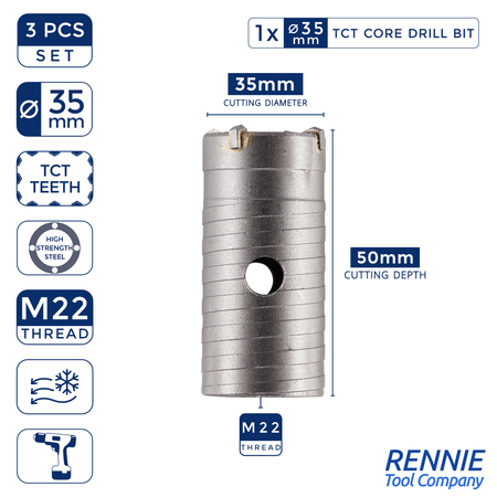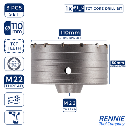 Rennie Tool Company invites you to experience the difference our TCT core drill bits will make by browsing our collection and adding your chosen product to your cart. If you’re unsure which would best suit your requirements, be sure to contact us at esales@rennietool.co.uk. We’ll get back to you as soon as we can to provide expert guidance to help you find what you’re looking for.